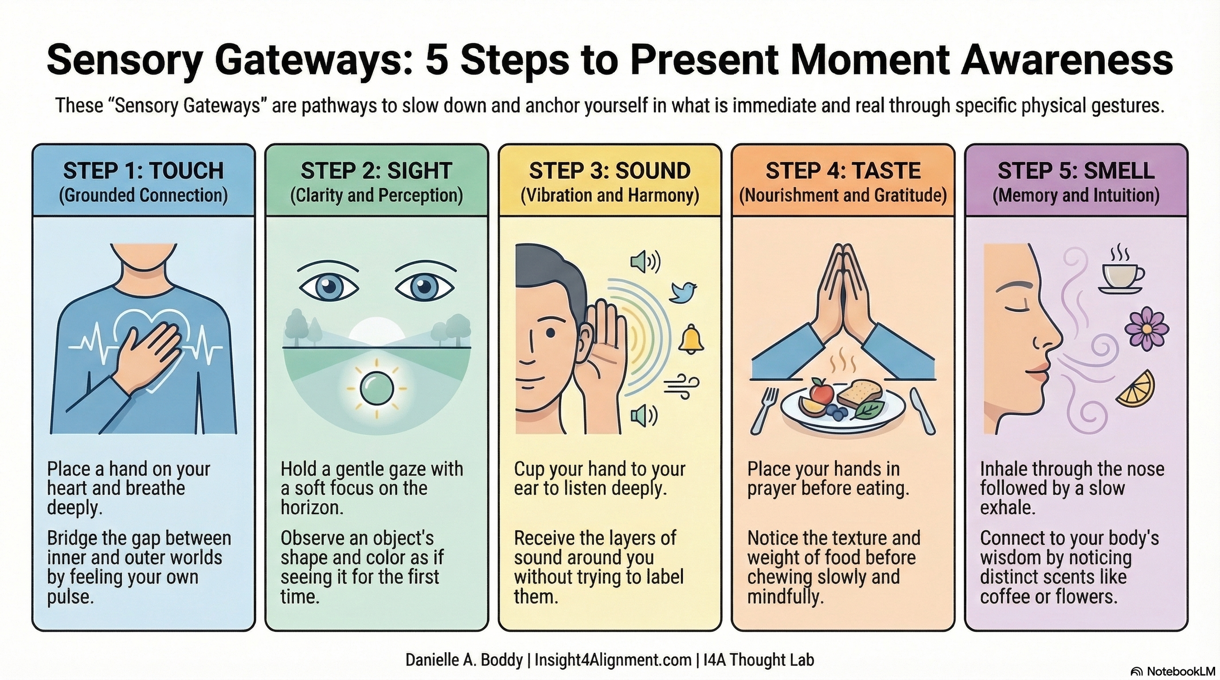 Each sense is a doorway to presence. As you move through these pages, you'll explore: